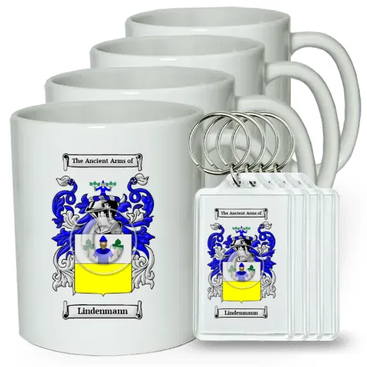 Set of 4 Coffee Mugs and Keychains