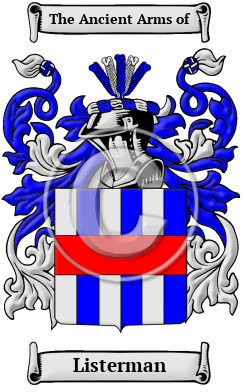 The surname Listerman was first found in Silesia and Lausitz, where the name emerged in mediaeval times as one of the notable families of the region. In Old-German "list" meant "cunning" or "artful," and chronicles first mention Heinrich list of Budweis in 1250, Cunad mit der Lyst in 1399, Benz Listli of Wuerttemberg in 1418, and Hans Listeman of Haldensleben around 1400. Liste is also a city near Hanover. From the 13th century the surname was identified with the great social and economic evolution which made this territory a landmark contributor to the development of the nation.