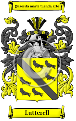 | Lutterell History, Family Crest & Coats of Arms Etymology of LutterellWhat does the name Lutterell mean? Lutterell is a name that came to England in the 11th century wave of migration that was set off by the Norman Conquest of 1066. The Lutterell family lived in Nottinghamshire. Many people think the name Luttrell was originally derived from the Old French word l'outre which means otter, but others believe the name could have been derived from Lutterell, a place in Normandy. "Robert Lotrel and Hugh his son were benefactors to the Abbey of Barberie, Normandy and its foundation. Symon Mutro was mentioned in England in 1130." 1 "In England the Luttrells were first seated in Nottinghamshire. Geoffrey Loterel, who held Gamston in that county, and some other manors in Derbyshire, obtained a great Lincolnshire barony, with Hoton-Paganel in Yorkshire, through his wife Trethesenta, daughter of William Paganel , and in the end his sole heir. " 2 Early Origins of the Lutterell familyThe surname Lutterell was first found in Nottinghamshire, but in Lincolnshire the aforementioned Sir Geoffrey de Luterel I (1160-1222), was courtier and confidante of King John. His son, Robert Luttrel was Lord Chancellor of Ireland (1238-1245) and his great grandson Sir Geoffrey Luttrell III (1276-1345) held a family seat at Irnham Hall at Irnham in Lincolnshire. Yorkshire has some interesting entries about the family. "In the reigns of Henry I. and Stephen, Sir J. Luttrell (probably a grandson of the Norman warrior) held in capite, the manor of Hoton Pagnel which eventually devolved upon an heiress, who married John Scott, feudal Lord of Calverley, and Steward of the household to the Empress Maud. " 3 Later, a branch of the family held a family seat at Beskaby in Leicestershire. "The manor of 'Bescoldeby' was held in 1363 by Andrew Luttrell, for Croxton Abbey." 4 Early History of the Lutterell familyThis web page shows only a small excerpt of our Lutterell research. Another 86 words (6 lines of text) covering the years 1226, 1238, 1295, 1420, 1490, 1518, 1551, 1554, 1628, 1655, 1656, 1657, 1666, 1713, 1717, 1732, 1787 and 1800 are included under the topic Early Lutterell History in all our PDF Extended History products and printed products wherever possible. Lutterell Spelling VariationsThe English language only became standardized in the last few centuries. For that reason, spelling variations are common among many Anglo-Norman names. The shape of the English language was frequently changed with the introduction of elements of Norman French, Latin, and other European languages; even the spelling of literate people's names were subsequently modified. Lutterell has been recorded under many different variations, including Luttrell, Loteral, Lutteral, Lutterall, Lutterell and many more. Early Notables of the Lutterell familySir John Luttrell (c. 1518-1551), who took the Queen of Scotland prisoner on the field of battle; Francis Luttrell (1628 - 1666), an English lawyer and politician who sat in the House of Commons between 1656 and 1666; Sir Thomas Luttrell (c. 1490-1554), Irish lawyer and judge who... Another 48 words (3 lines of text) are included under the topic Early Lutterell Notables in all our PDF Extended History products and printed products wherever possible. Migration of the Lutterell family to IrelandSome of the Lutterell family moved to Ireland, but this topic is not covered in this excerpt. Another 157 words (11 lines of text) about their life in Ireland is included in all our PDF Extended History products and printed products wherever possible.