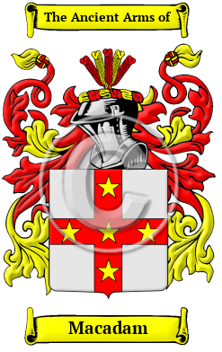 | Macadam History, Family Crest & Coats of Arms Etymology of MacadamWhat does the name Macadam mean? Macadam is one of the oldest family names to come from the Anglo-Saxon tribes of Britain. It is derived from the given name Adam, which is itself derived from the Latin name Adamus which means earth. Early Origins of the Macadam familyThe surname Macadam was first found in many counties throughout England and Scotland. "Six centuries ago Adam probably ranked as second or third favourite among boys' names throughout England. In the north it attained a most remarkable pre-eminence." 1 Another source notes the name is "rare in the eastern and northern counties. In the north, however, its place is sometimes taken by Adamson and Addison, as in the county of Durham. It is at present best represented in Buckinghamshire, Devon, Hampshire, and Staffordshire, and in the counties on the Welsh border, Shropshire and Monmouthshire. " 2 Shortly after the Conquest, forenames were still rare, but for popular names such as this an appellation was typically added denoting "from where they hailed" or in some cases, an occupation. By example, Adam of Barking (fl. 1217?), was a Benedictine monk belonging to the abbey of Sherborne in Dorset; Adam of Buckfield (fl. 1300?), was an English commentator on Aristotle; Adam the Carthusian (fl. 1340) was described as a Carthusian monk and a doctor of theology; Adam of Domerham (d. after 1291), was a monk of Glastonbury, a native of Domerham, a village in Wiltshire belonging to Glastonbury Abbey; Adam de Marisco (d. 1257?), was a learned Franciscan, is said to have been a native of Somerset; and Adam of Orlton (d. 1345), successively bishop of Hereford, Worcester, and Winchester. 3 As far as early rolls are concerned, England and Scotland had the lion's share of early entries. The Hundredorum Rolls of 1273 had the following entries: John filius Adam, Oxfordshire; Hugh filius Adam, Oxfordshire; German Adam, Cambridgeshire; and Juliana Adams, Huntingdonshire. Further to the north and over one hundred years later, the Yorkshire Poll Tax Rolls of 1379 listed: Johannes Adamson; Johannes Adam; and Thomas Adamson. 1 In Scotland, "Adam sub-prior of Melrose became abbot of Cupar, 1189. Adam son of Adam was one of the witnesses to the charter by William Bruce to Adam of Carlyle of the lands of Kynemund, c. 1194-1214, and he also witnessed the resignation by Dunegal, son of Udard of a carucate of land in Warmanbie within the same period. Adam became abbot of Newbattle in 1201, and another Adam, a native of Lennox (Levenax), was a monk of great sanctity. " 4 Early History of the Macadam familyThis web page shows only a small excerpt of our Macadam research. Another 186 words (13 lines of text) covering the years 1189, 1281, 1327, 1329, 1460, 1585, 1586, 1626, 1651, 1654, 1655, 1656, 1658, 1661, 1662, 1667, 1685, 1689, 1695, 1697, 1698, 1712, 1719, 1720, 1748, 1760, 1789, 1808, 1829, 1890 and 1891 are included under the topic Early Macadam History in all our PDF Extended History products and printed products wherever possible. Macadam Spelling VariationsOnly recently has spelling become standardized in the English language. As the English language evolved in the Middle Ages, the spelling of names changed also. The name Macadam has undergone many spelling variations, including Adam, Adams, MacAdam, MacAdams, MacCaw and others. Early Notables of the Macadam familyWilliam Adams (1585-1661), London Haberdasher born in Newport, Shropshire, who founded Adams' Grammar School in 1656; Sir Thomas Adams, 1st Baronet (1586-1667), Lord Mayor of the City of London and a Member of Parliament for the City of London from 1654-1655 and 1656-1658; Richard Adams (ca. 1626-1698), a non-conforming English Presbyterian divine; Fitzherbert Adams... Another 54 words (4 lines of text) are included under the topic Early Macadam Notables in all our PDF Extended History products and printed products wherever possible. Migration of the Macadam family to IrelandSome of the Macadam family moved to Ireland, but this topic is not covered in this excerpt. Another 108 words (8 lines of text) about their life in Ireland is included in all our PDF Extended History products and printed products wherever possible.