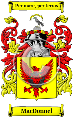 Ireland Scotland Etymology of MacDonnelWhat does the name MacDonnel mean? The root of the ancient Dalriadan-Scottish name MacDonnel is the personal name Donald. the surname is derived from the Gaelic Mac Dhomhnuill, which means son of Donald; it is a form of the surname MacDonald. Early Origins of the MacDonnel familyThe surname MacDonnel was first found in Inverness, where the origins of this name can be traced back to Somerled, Regulus of the Isles, who evicted the Norsemen from the Western Isles during the 12th century. From him is descended John Macdonald, first Lord of the Isles, and it was MacDonald's younger son, Ranald, who was the progenitor of Clanrald, which includes the families of Moidart, Morar, Knoidart and Glengarry. The MacDonells are from this last branch. It is from Ranald's son, Donald, that the MacDonell's take their name (Son of Donald). There is also a branch of the MacDonells that claim Ranald's other son, Alistair, as its progenitor (the Keppoch branch). Early History of the MacDonnel familyThis web page shows only a small excerpt of our MacDonnel research. Another 376 words (27 lines of text) covering the years 1211, 1411, 1575, 1609, 1647, 1672, 1683, 1745, 1749, 1790, 1794, 1812 and 1890 are included under the topic Early MacDonnel History in all our PDF Extended History products and printed products wherever possible. MacDonnel Spelling VariationsThe translation of Gaelic names in the Middle Ages was not a task undertaken with great care. Records from that era show an enormous number of spelling variations, even in names referring to the same person. Over the years MacDonnel has appeared as MacDonnell, MacDonnel, McDonnell, MacDonell and others. Early Notables of the MacDonnel family Migration of the MacDonnel family to IrelandSome of the MacDonnel family moved to Ireland, but this topic is not covered in this excerpt. Another 118 words (8 lines of text) about their life in Ireland is included in all our PDF Extended History products and printed products wherever possible. Migration of the MacDonnel familyMany settled along the east coast of what would become the United States and Canada. As the American War of Independence broke out, those who remained loyal to the crown went north to Canada as United Empire Loyalists. The ancestors of all of these hardy Dalriadan-Scottish settlers began to recover their collective history in the 20th century with the advent of the vibrant culture fostered by highland games and Clan societies in North America. Highland games, Clan societies, and other organizations generated much renewed interest in Scottish heritage in the 20th century. The MacDonnel were among the earliest of the Scottish settlers as immigration passenger lists have shown: John MacDonnell, who settled in Virginia in 1650; and of course, the large settlement of MacDonnells who settled in Canada.
