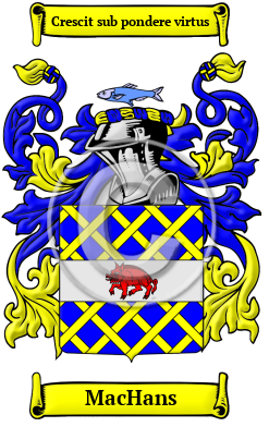 Ireland Wales Etymology of MacHansWhat does the name MacHans mean? Throughout history, very few Irish surnames have exclusively maintained their original forms. Before being translated into English, MacHans appeared as Mac Cana, which is derived from the word cana, which means wolf cub. Early Origins of the MacHans familyThe surname MacHans was first found in County Armagh (Irish: Ard Mhacha) located in the province of Ulster in present day Northern Ireland, at Clanbrasil, a region on the southern shore of Lough Neagh. The family supplanted the O'Graveys at the time of Strongbow's Anglo-Norman invasion in 1172 as lords of this area and became known as the Lords of Clanbrassil. One of the earliest records of the name was Amhlaibh Mc Canna (died 1155), described by the Four Masters as "pillar of chivalry and vigour of Cinel Eoghin" 1 Early History of the MacHans familyThis web page shows only a small excerpt of our MacHans research. Another 39 words (3 lines of text) covering the years 1155, 1598 and 1718 are included under the topic Early MacHans History in all our PDF Extended History products and printed products wherever possible. MacHans Spelling VariationsThe recording of names in Ireland during the Middle Ages was an inconsistent endeavor at best. Since the general population did not know how to read or write, they could only specify how their names should be recorded orally. Research into the name MacHans revealed spelling variations, including MacCann, MacCanna, MacCan, MacAnn, MacAn and others. Early Notables of the MacHans familyAnother 45 words (3 lines of text) are included under the topic Early MacHans Notables in all our PDF Extended History products and printed products wherever possible. Migration of the MacHans familyA great mass of Ireland's native population left the island in the 19th century, seeking relief from various forms of social, religious, and economic discrimination. This Irish exodus was primarily to North America. If the migrants survived the long ocean journey, many unfortunately would find more discrimination in the colonies of British North America and the fledgling United States of America. These newly arrived Irish were, however, wanted as a cheap source of labor for the many large agricultural and industrial projects that were essential to the development of what would become two of the wealthiest nations in the western world. Early immigration and passenger lists indicate many people bearing the MacHans name: Arthur, Bernard, Charles, Edward, Francis, Henry, Hugh, James, John, Mary, Michael, Owen, Patrick, Peter, Roger, Thomas and William MacCann, who all arrived in Philadelphia between 1840 and 1860.
