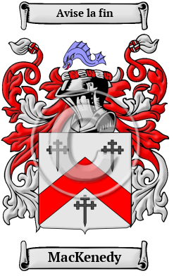 Scotland Ireland Etymology of MacKenedyWhat does the name MacKenedy mean? The name MacKenedy was first used by a Strathclyde-Briton family from the Scottish/English Borderlands. It was a name for a dour or serious person. Further research revealed that the name is derived from the Gaelic nickname Cinneididh, which translates as grim-headed. It is doubtful that there is any ancient relationship between the Irish Kennedys and the Scottish Clan. The Irish Kennedy's history dates back to about 900 AD, and there did not appear to be any direct relationship between the two families. However, in the 16th century, a sept of the Scottish Kennedy Clan did develop in Ulster, but they are undoubtedly migrants from Scotland, and had no previous link to the southern Irish Kennedys. MacKenedy Coat of Arms CreationThe crest of the Clan Kennedy is a swimming dolphin, and Dauphin, the name given to the eldest son of the French kings, is a pun. The dolphin in heraldry is represented as the king of fishes, strong and swift in pursuing other fish, a lover of men and music, and was used to convey the idea of sovereignty. It is said that Ulysses carried a dolphin on his shield and signet ring, because that fish saved his son Telemachus when he fell into the sea. David, the son of Sir Gilbert Kennedy, was one of the retinue which attended Margaret of Scotland on her marriage to the Dauphin in 1436, in honour of which the alteration may have been made to the supporters and crest. One of the family became Joan of Arc's most trussed generals, and it may have been because of this that the pun was made, dolphin for Dauphin. 1 Early Origins of the MacKenedy familyThe surname MacKenedy was first found in Ayrshire (Gaelic: Siorrachd Inbhir Àir), formerly a county in the southwestern Strathclyde region of Scotland, that today makes up the Council Areas of South, East, and North Ayrshire, where the earliest record of them dates from 1185, during the reign of King William the Lion, when a Henry Kennedy was reported to have been involved in a rebellion in Galloway but died in battle. The Kennedys derived from a branch of Celtic Earls of Galloway (not to be confused with Gallway, which is in Ireland). Their power and influence in that region was great. In fact, there is a rhyme handed down through clansmen and bards from the year 1300 which runs as follows: 'Twixt Wigtown and the town of Ayr, Portpatrick and the Cruives of Cree. No man need think to bide there, unless he court with Kennedy.' 2 Early History of the MacKenedy familyThis web page shows only a small excerpt of our MacKenedy research. Another 246 words (18 lines of text) covering the years 1170, 1296, 1406, 1437, 1451, 1480, 1508, 1509, 1513, 1515, 1527, 1541, 1558, 1573, 1576, 1615, 1646, 1653, 1668, 1701 and 1890 are included under the topic Early MacKenedy History in all our PDF Extended History products and printed products wherever possible. MacKenedy Spelling VariationsIn the era before dictionaries, there were no rules governing the spelling or translation of names or any other words. Consequently, there are an enormous number of spelling variations in Medieval Scottish names. MacKenedy has appeared as Kennedy, Kannady, Kenardy, Kennaday, Kenneday, Kenneyday, Kennediem, MacKennedy, MacUalraig (Gaelic) and many more. Early Notables of the MacKenedy familyGilbert Kennedy, 1st Lord Kennedy (c. 1406-c. 1480); John Kennedy, 2nd Lord Kennedy (1451-1508); David Kennedy, 3rd Lord Kennedy (d. 1513) (created Earl of Cassilis in 1509); David Kennedy, 1st Earl of Cassilis (d. 1513); Gilbert Kennedy, 2nd Earl of Cassilis (d. 1527); Gilbert Kennedy, 3rd Earl of Cassilis... Another 49 words (4 lines of text) are included under the topic Early MacKenedy Notables in all our PDF Extended History products and printed products wherever possible. Migration of the MacKenedy family to IrelandSome of the MacKenedy family moved to Ireland, but this topic is not covered in this excerpt. Another 78 words (6 lines of text) about their life in Ireland is included in all our PDF Extended History products and printed products wherever possible. Migration of the MacKenedy familyThe freedom, opportunity, and land of the North American colonies beckoned. There, Scots found a place where they were generally free from persecution and where they could go on to become important players in the birth of new nations. Some fought in the American War of Independence, while others went north to Canada as United Empire Loyalists. The ancestors of all of these Scottish settlers have been able to recover their lost national heritage in the last century through highland games and Clan societies in North America. Among them: Alexander Kennedy settled in Charleston in 1763; Alexander Kennedy settled in Virginia in 1774; Angus Kennedy settled in New York in 1775; Hector Kennedy settled in Philadelphia in 1806.