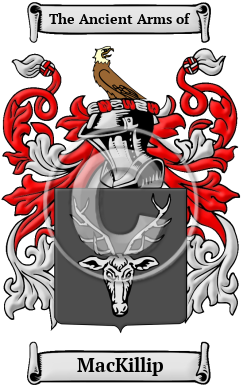 Scotland Ireland Etymology of MacKillipWhat does the name MacKillip mean? The ancestors of the MacKillip family come from the ancient Scottish kingdom of Dalriada. The family name comes from the personal name Philip, which is originally derived from the Greek personal name Philippos, which means horse-lover. The Gaelic form of the surname is Mac Fhilib, meaning son of Philip. The f is aspirated in the genitive case, causing it to disappear. 1 Early Origins of the MacKillip familyThe surname MacKillip was first found in Argyllshire (Gaelic erra Ghaidheal), the region of western Scotland corresponding roughly with the ancient Kingdom of Dál Riata, in the Strathclyde region of Scotland, now part of the Council Area of Argyll and Bute, where they held a family seat at Brae Lochaber from ancient times being descended from an ancient chieftain of the MacDonnells of Keppoch who were, in turn, descended from the Lords of the Isles. It has been suggested that the MacKillops or MacGilps may be the sons of Ilpin or Gilpin, in Iam Lom's "Soiidh do'n Ghreumach." "Some of this name are said to have been standard-bearers to the Campbells of Dunstaffnage, others are included as septs of Macdonald of Glencoe and of Macdonells of Keppoch, and Mackillop also occurs as a surname in Arran. Finlaius Macpilibh, priest of the diocese of Argyll, is in record in 1433, and in 1437 John, son of Fynlaius Prioris Macphilib, appears as perpetual vicar of Kilcalmonell." 1 The MacPhillip or MacPhillips variant reappears later in history as the first record of the branch was found as "Philip, a son of Fingonius, prior of Iona, who was commemorated on a tombstone in Cladh Reg, Kirkapoll, Tiree, 1495. " 1 Early History of the MacKillip familyThis web page shows only a small excerpt of our MacKillip research. Another 124 words (9 lines of text) covering the years 1433, 1437, 1526, 1532, 1547 and 1659 are included under the topic Early MacKillip History in all our PDF Extended History products and printed products wherever possible. MacKillip Spelling VariationsHistorical recordings of the name MacKillip include many spelling variations. They are the result of repeated translations of the name from Gaelic to English and inconsistencies in spelling rules. They include MacKillop, McKillop, MacGilp, McGilp, MacKillip, McKillip, MacGillip, McGillip, MacKillup, McKillup, Kellop, Kellops, Killop, Killup, Gilp, Gillip, Killip, Killips, MacFhilib, MacPhilip and many more. Early Notables of the MacKillip familyMore information is included under the topic Early MacKillip Notables in all our PDF Extended History products and printed products wherever possible. Migration of the MacKillip family to IrelandSome of the MacKillip family moved to Ireland, but this topic is not covered in this excerpt. Another 145 words (10 lines of text) about their life in Ireland is included in all our PDF Extended History products and printed products wherever possible. Migration of the MacKillip familyDalriadan families proliferated in North America. Their descendants still populate many communities in the eastern parts of both the United States and Canada. Some settled in Canada as United Empire Loyalists, in the wake of the American War of Independence. Families on both sides of the border have recovered much of their heritage in the 20th century through Clan societies and highland games. Analysis of immigration records indicates that some of the first North American immigrants bore the name MacKillip or a variant listed above: John McKillop arrived in Boston Mass in 1767; Hugh McKillop arrived in Pennsylvania in 1833; Robert McKillup arrived in Pennsylvania in 1839.