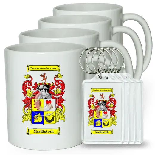 Set of 4 Coffee Mugs and Keychains