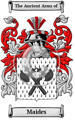 England Etymology of MaidesWhat does the name Maides mean? The distinguished name Maides originates in Maidstone, Kent dating back to before the Domesday Book of 1086. The place name probably means "stone of the maidens, (where they gathered)." 1 Early Origins of the Maides familyThe surname Maides was first found in Kent at Maidstone, a borough, markettown, and parish, having separate jurisdiction, and the head of a union, locally in the hundred of Maidstone. "Some writers have thought this to be the Caer Meguiad or Megwad enumerated by Nennius among the principal cities in Britain. Camden considers it to be the Vagniacæ mentioned in the second Itinerary of Antoninus. The Saxons named it Medwegestun, a town on the Medwege or middle river, now Medway; in Domesday Book it is written Meddestane, and in records of the time of Edward I., Maydenestane, from which the transition to its present appellation is easy. " 2 Early History of the Maides familyThis web page shows only a small excerpt of our Maides research. Another 68 words (5 lines of text) covering the years 1396, 1410, 1412 and 1586 are included under the topic Early Maides History in all our PDF Extended History products and printed products wherever possible. Maides Spelling VariationsIt is only in the last few hundred years that the English language has been standardized. For that reason, Anglo-Norman surnames like Maides are characterized by many spelling variations. Scribes and monks in the Middle Ages spelled names they sounded, so it is common to find several variations that refer to a single person. As the English language changed and incorporated elements of other European languages such as Norman French and Latin, even literate people regularly changed the spelling of their names. The variations of the name Maides include Maidstone, Maidston, Mayston, Maydeston, Madston and others. Early Notables of the Maides familyRichard Maidstone or Maydestone (d. 1396), Carmelite, a native of Kent, educated at Oxford, where he became bachelor and doctor of divinity. Maidstone was confessor to John of Gaunt (MS. e Mus. 86, f. 160), and a Carmelite friar of Aylesford, Kent, where he died on 1 June 1396. According to the 'Savile Catalogue,' compiled in 1586, he was a fellow of Merton College, but, as Anthony à Wood noticed, this is extremely doubtful. 3