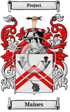 | Maines History, Family Crest & Coats of Arms Etymology of MainesWhat does the name Maines mean? The ancestors of the Maines family brought their name to England in the wave of migration after the Norman Conquest of 1066. They lived in Maien, or Mayene, from Mayenne in Maine, Normandy and was a powerful baronial house, with Walter de Maynne listed in 976. 1 Early Origins of the Maines familyThe surname Maines was first found in Devon at King's Nympton, a parish, in the union of South Molton, hundred of Witheridge. The manor, which was parcel of the ancient demesne of the crown, was granted by King John to Joel de Mayne, by whose rebellion it was again vested in the crown: it was given by Henry III. to Roger le Zouch. 2 "Judael of Mayenne had a vast barony in Devon in 1086, and his family long continued there. In 1165 Walter Fitz Juel de Mayenne (de Meduana) held a barony of twenty-one knight's fees in Kent." 3 Judael appears in the Domesday Book as Judhel de Totenais, so named for the barony of Totness. He is probably the grandfather of Juhel de Meduana who witnesses one of the Empress Maud's charters to Geoffrey de Mandeville. Nicholas de Meduana, of Dorset and Somerset are listed in the Great Roll of the Pipe (Pipe Rolls) 1 Richard I. 1 Early History of the Maines familyThis web page shows only a small excerpt of our Maines research. Another 102 words (7 lines of text) covering the years 1140, 1544, 1577, 1612, 1631, 1633, 1654, 1661, 1668, 1683, 1702, 1705, 1708, 1711 and 1890 are included under the topic Early Maines History in all our PDF Extended History products and printed products wherever possible. Maines Spelling VariationsBefore the last few hundred years the English language had no fixed system of spelling rules. For that reason, spelling variations occurred commonly in Anglo Norman surnames. Over the years, many variations of the name Maines were recorded, including Main, Maine, Mayne and others. Early Notables of the Maines familySaint Cuthbert Mayne (1544-1577), an English Roman Catholic priest and martyr of the Reformation and Counter-Reformation; Simon Mayne (1612-1661), English Member of Parliament from Dinton Hall in Buckinghamshire, one of the regicides of King Charles I; and Lieutenant-General Edmund Maine (1633-1711), an English soldier and politician, Governor of Berwick-upon-Tweed (1702-1711) and Member of Parliament for Morpeth (1705-1708.)