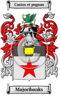 Scotland Early Origins of the Majoribanks familyThe surname Majoribanks was first found in Renfrewshire in the lands of Ratho-Marjori, "so named from their having been bestowed on the Princess Marjorie, daughter of Robert the Bruce, on her marriage in 1316 with Walter the High Steward. The lands subsequently called 'terre de Ratho-Marjoribankis' came into possession of a family of the name of Johnston, who from them assumed the name of Marjoribanks, though they continued to bear in part the Johnston arms. Also said to be from barony of same name which formerly comprised the greater part of the eastern division of West Calder parish. Also from their lands in Dumfriesshire. " 1 One of the first records of the family was Thomas Marjoribankis, Clerk of Rolls. "A payment was made to Thomas Meriory Banks in Aberdeen, c. 1548. John Mairjoribanks, attorney in Glasgow, 1550, and in the same year Mr. John Marjorybankis was retoured heir of John Marjoribanks his father. Thomas Marjorybankis in Glasgow had a precept of sasine in 1554, James Marjoribanks was notary public in Edinburgh in the same year, and Mr. Thomas Marioribankis of Ratho was witness, 1557." 1 "When, Walter, High Steward of Scotland, and ancestor of the royal house of tewart, espoused Marjorie (Margaret), only daughter of Robert Bruce, and eventually heiress to the crown, the barony of Ratho was granted by the king as a marriage portion to his daughter, by charter which is still extant; and these lands, being subsequently denominated 'Terra de Ratho Marjorie-banks,' gave rise to the name of Marjoribanks." 2 Samuel Marchbanks is a fictional character created by Canadian novelist and journalist Robertson Davies who wrote editorials for the Peterborough Examiner newspaper. He wrote four novels about the character. Marchbanks was in fact, a pseudonym used by Davies. Early History of the Majoribanks familyThis web page shows only a small excerpt of our Majoribanks research. Another 127 words (9 lines of text) covering the years 1316 and 1554 are included under the topic Early Majoribanks History in all our PDF Extended History products and printed products wherever possible. Majoribanks Spelling VariationsSpelling variations of this family name include: Marjoribanks, Majoribanks, Marchbanks, Marjorum and many more. Early Notables of the Majoribanks familyMore information is included under the topic Early Majoribanks Notables in all our PDF Extended History products and printed products wherever possible.