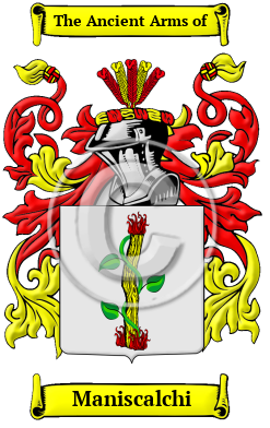 The Maniscalchi name is derived from the word "maniscalco," meaning "marshall," from medieval Latin mariscalcus, marescalcus; as such it was likely an occupational name.