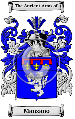 Italy Spain Etymology of ManzanoWhat does the name Manzano mean? Venice, one of the oldest and most beautiful island regions of Italy, is the esteemed birthplace of numerous prominent families, including the family that bears the surname Manzano. Although people were originally known only by a single name, it became necessary for people to adopt a second name to identify themselves as populations grew and travel became more frequent. The process of adopting fixed hereditary surnames was not complete until the modern era, but the use of hereditary family names in Italy began in the 10th and 11th centuries. Italian hereditary surnames were developed according to fairly general principles and they are characterized by a profusion of derivatives coined from given names. Although the most common type of family name found in Venice is the patronymic surname, which is derived from the father's givenname, names derived from occupations are also found. Occupational surnames, which are less common than other types of surnames in Italy, date back to the feudal era. However, under the Feudal System, occupational names did not become hereditary until the offices themselves became hereditary. It was only after an occupation was inherited by several generations in lineal descent that occupational names came to be applied to entire families, and so became a hereditary surname. The surname Manzano is a common occupational name for a person who raised steers having being derived from the Italian word Manzo, meaning steer. During the Middle Ages, Italian society was primarily based on agriculture and accordingly agricultural occupations were quite frequently shown in the development of these surnames. Early Origins of the Manzano familyThe surname Manzano was first found in Friuli (Venetian: Friul), an area of northeastern Italy, with Patriarca di Aquileia Volserico Manzano in 1083. Early History of the Manzano familyThis web page shows only a small excerpt of our Manzano research. The years 1500, 1714, 1774, 1785 and 1860 are included under the topic Early Manzano History in all our PDF Extended History products and printed products wherever possible. Manzano Spelling VariationsThere are many variations of most of those Italian names that originated in the medieval era. Some of these come from regional differences, like the tradition of ending northern names in "o" and southern names in "i". Others come from inaccuracies in the recording process, which were extremely common in the eras before dictionaries standardized spelling. Some of the spelling variations of Manzano are Manzo, Manzano, Manzoni, Manzonni, Manzonne, Mansone, Manzu, Manzuoli, Manzuolo, Manzi, Manzoli, Manzolo, Manzano, Manzelli, Manzina, Manzini and many more. Early Notables of the Manzano family- Cianciano Manzano was commander of the castle of Manzano, which stands in Friulì. The Manzini family of Modena was one of the most powerful families in the city during the medieval period. Giovanni Ma...