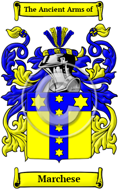 France Italy Etymology of MarcheseWhat does the name Marchese mean? From the historical and fascinating Italian region of Venice emerged a multitude of noble families, including the distinguished Marchese family. Although people were originally known only by a single name, it became necessary for people to adapt a second name to identify themselves as populations grew and travel became more frequent. The process of adopting fixed hereditary surnames was not complete until the modern era, but the use of hereditary family names in Italy began in the 10th and 11th centuries. Italian hereditary surnames were developed according to fairly general principles and they are characterized by a profusion of derivatives coined from given names. Although the most common type of family name found in the region of Venice is the patronymic surname, which is derived from the father's given name, the nickname type of surname is also frequently found. Nickname surnames were derived from an eke-name, or added name. They usually reflected the physical characteristics or attributes of the first person that used the name. The surname Marchese came from a feudal lord. The surname Marchesi is derived from the medieval Latin word marca, which means the territory over which feudal lords reigned. At the end of the Middle Ages, the word marchese became a nobiliary title as Count or duke. The nickname marchese was later given also to people who worked for a marquis or were part of his routine. Also, people who played the role of a marquis in pageants and festivals could afterward acquire the nickname of marchese. Early Origins of the Marchese familyThe surname Marchese was first found in Lombardy (Italian: Lombardia), with records from the 10th century showing that the Marchese family was of upper nobility in the region. Early History of the Marchese familyThis web page shows only a small excerpt of our Marchese research. Another 24 words (2 lines of text) covering the years 1475, 1494 and 1848 are included under the topic Early Marchese History in all our PDF Extended History products and printed products wherever possible. Marchese Spelling VariationsIn comparison with other European surnames, Italian surnames have a surprising number of forms. They reflect the regional variations and the many dialects of the Italian language, each with its own distinctive features. For example, in Northern Italy the typical Italian surname suffix is "i", whereas in Southern Italy it is "o". Additionally, spelling changes frequently occurred because medieval scribes and church officials often spelled names as they sounded rather than according to any specific spelling rules. The spelling variations in the name Marchese include Marchesi, Marchese, Marchesich, Marchesini, Marcheselli, Marchesin, Marchesana, Marchisio, Marchesotti and many more. Early Notables of the Marchese family- Salinbene Marchese received three large feudal territories from King Federico II because of his dedication as the King's secretary and consultant. Giovanni Marchese was Bishop of Patti in 1494