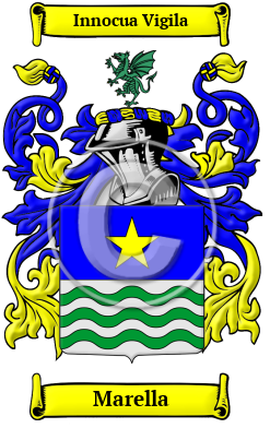 | Marella History, Family Crest & Coats of Arms Etymology of MarellaWhat does the name Marella mean? The Italian family name Marella is classified as being of personal name origin, as in the case of many family names this surname derives its origins from the given name of one of the parents of its initial bearer. The name Marella is most probably derived from a short form of the feminine version of the name Ademaro, Mara. To this name has been added the suffix "-ella" to form a pet name. In this case the surname is of matronymic origin and would mean "son of Mara". The root name "mare" also means "sea," denoting someone living by the sea. Alternatively, the surname may be of nickname origin, based on a physical characteristic or a personal attribute of the original bearer. Instances of names with this origin are based on the Italian regional words "amaru", "amaro" and "maru", which mean "affliction and pain"; evidently early bearers of this name were known to their contemporaries by the fact that they suffered some kind of misfortune. The word "amaro" is ultimately derived from the Hebrew "mara", which means "bitter". This name has also biblical associations, as Mara was the name taken by Naomi out of sorrow. Monte Morello is the highest mountain (934 m.) in the Florentine valley, Italy, located to the north-west of Florence. Early Origins of the Marella familyThe surname Marella was first found in Maglione (Piemonte), as records show some of the family were endowed with the title of Counts of Verde and Counts of Baio in the sixteenth century. In this case, the record shows the Marello spelling was used. Early History of the Marella familyThis web page shows only a small excerpt of our Marella research. The years 1852, 1872, 1882, 1922, 1929 and 1969 are included under the topic Early Marella History in all our PDF Extended History products and printed products wherever possible. Marella Spelling VariationsIn comparison with other European surnames, Italian surnames have a surprising number of forms. They reflect the regional variations and the many dialects of the Italian language, each with its own distinctive features. For example, in Northern Italy the typical Italian surname suffix is "i", whereas in Southern Italy it is "o". Additionally, spelling changes frequently occurred because medieval scribes and church officials often spelled names as they sounded rather than according to any specific spelling rules. The spelling variations in the name Marella include Marelli, Marello, Marella, Marela, Merello and others. Early Notables of the Marella family- Doña Gliceria Legaspi Marella de Villavicencio (1852-1929), also known as Aling Eralian, is one of the famous Filipinos who gave her own wealth, time, knowledge and effort to help the Revolutionaries...