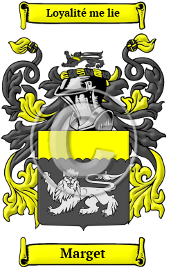 | Marget History, Family Crest & Coats of Arms Etymology of MargetWhat does the name Marget mean? Marget is a name of ancient Norman origin. It arrived in England with the Norman Conquest of 1066. The Marget family lived in Sussex. Their name, however, is thought to be derived from a location in Normandy called Argenson, which would have been used as a name in its local form, D'Argenson, meaning from Argenson. The location, however, like many small settlements of the time, has been lost to the map in contemporary times. It is likely that the M now appears as the first letter of the name in most cases due to confusion with the similar metronymic name meaning son of Margaret. 1 Early Origins of the Marget familyThe surname Marget was first found in West Sussex where the family held estates in Offington. One source claims "John D'Argenson, living in 1449, had two sons, one of whom fought at the battle of Pavia, in 1524, and the other, Peter D'Argenson, was founder of the English branch. The Margetsons of Yorkshire sprang from that personage, which may well admit of question, for certainly D'Argenson and Margetson are not much alike." 2 The Yorkshire Poll Tax Rolls of 1379 list: Robert Marjorison; Richard Marjorison; and Roger Margeryson. 1 Early History of the Marget familyThis web page shows only a small excerpt of our Marget research. Another 95 words (7 lines of text) covering the years 1600, 1633, 1635, 1637, 1663 and 1678 are included under the topic Early Marget History in all our PDF Extended History products and printed products wherever possible. Marget Spelling VariationsIt is only in the last few hundred years that the English language has been standardized. For that reason, Anglo-Norman surnames like Marget are characterized by many spelling variations. Scribes and monks in the Middle Ages spelled names they sounded, so it is common to find several variations that refer to a single person. As the English language changed and incorporated elements of other European languages such as Norman French and Latin, even literate people regularly changed the spelling of their names. The variations of the name Marget include Margesson, Margeson, Margerison, Margetson and many more. Early Notables of the Marget familyMore information is included under the topic Early Marget Notables in all our PDF Extended History products and printed products wherever possible. Migration of the Marget family to IrelandSome of the Marget family moved to Ireland, but this topic is not covered in this excerpt. Another 80 words (6 lines of text) about their life in Ireland is included in all our PDF Extended History products and printed products wherever possible. Migration of the Marget familyFaced with the chaos present in England at that time, many English families looked towards the open frontiers of the New World with its opportunities to escape oppression and starvation. People migrated to North America, as well as Australia and Ireland in droves, paying exorbitant rates for passages in cramped, unsafe ships. Many of the settlers did not make the long passage alive, but those who did see the shores of North America were welcomed with great opportunity. Many of the families that came from England went on to make essential contributions to the emerging nations of Canada and the United States. Some of the first immigrants to cross the Atlantic and come to North America carried the name Marget, or a variant listed above: Edward Margeson was one of the passengers on the " Mayflower" which arrived in 1620; Robert Margeson settled in Virginia in 1655; Joseph Margerison settled in Philadelphia in 1880..