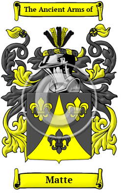 | Matte History, Family Crest & Coats of Arms Etymology of MatteWhat does the name Matte mean? The name Matte stems from two sources which were continually mixed up throughout the Middle Ages, so they can no longer be differentiated: one was Matthaeus the Evangelist, who was patron saint of tax collectors, and the other was Mattias (Hebrew for "gift of the gods"), who was one of the twelve Apostles. Early Origins of the Matte familyThe surname Matte was first found in Prussia, where the family contributed greatly to the development of an emerging nation, and would later play a large role in the tribal and national conflicts of the area. In later years the name branched into many houses, each playing a significant role in local social and political affairs. Early History of the Matte familyThis web page shows only a small excerpt of our Matte research. Another 146 words (10 lines of text) covering the years 1504, 1558, 1681, 1710, 1727, 1761, 1764, 1809, 1811 and 1831 are included under the topic Early Matte History in all our PDF Extended History products and printed products wherever possible. Matte Spelling VariationsSpelling variations of this family name include: Matt, Matte, Mattlin, Matter, Mattler, Mattner, Mattmann and many more. Early Notables of the Matte familyJohannes Mathesius (1504-65), who was a friend and disciple of Martin Luther. He is the author of the first biography of Luther, and himself wrote hymns and sermons. Johann Mattheson (1681-1764) was a musician and translator and produced the first German imitation of "The Spectator." Johann Matheson (1681-1764) was a German composer and pupil of... Another 54 words (4 lines of text) are included under the topic Early Matte Notables in all our PDF Extended History products and printed products wherever possible. Matte World Rankingthe United States, the name Matte is the 9,216th most popular surname with an estimated 2,487 people with that name. 1 However, in Canada, the name Matte is ranked the 949th most popular surname with an estimated 5,698 people with that name. 2 And in Quebec, Canada, the name Matte is the 449th popular surname. 3 France ranks Matte as 9,321st with 500 - 1,000 people. 4