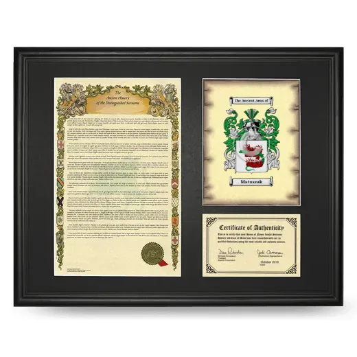 Framed Surname History and Coat of Arms - Black