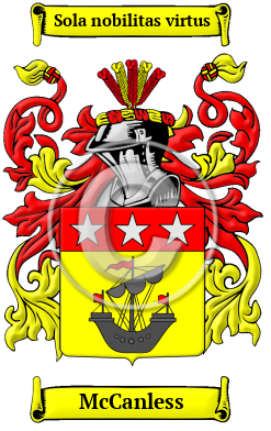 | McCanless History, Family Crest & Coats of Arms Early Origins of the McCanless familyThe surname McCanless was first found in Galloway (Gaelic: Gall-ghaidhealaibh), an area of southwestern Scotland, now part of the Council Area of Dumfries and Galloway, that formerly consisted of the counties of Wigtown (West Galloway) and Kirkcudbright (East Galloway), where they held a family seat in Western Scotland. After the Norman Conquest of England many of Duke William's rebellious Barons moved north. The border became a convenient but turbulent no-man's land where the persecuted found haven. Many were given land by King Malcolm Canmore and later by King David of Scotland. Some Gallowegians were native Scots, some were Irish clans mostly from Ulster in the 13th century. The name was first recorded in Scotland about the 15th century in Wigtown. They may also have been McCanish sept of Atholl to the north. "Eight of this name appear in Wigtownshire in eighteenth century (Wigtown). William M'Candlish in Balmangan, 1794 (Kirkcudbright). In 1684 the name appears as Makkanless, McCandlish McAndlish M'Canleis, and M'Caunles (Parish). The spelling with Mac is probably now extinct. From Irish MacCuindlis or MacCuindilis, son of Cuindleas." 1 Early History of the McCanless familyThis web page shows only a small excerpt of our McCanless research. Another 122 words (9 lines of text) covering the years 1684, 1794, 1806, 1873 and 1890 are included under the topic Early McCanless History in all our PDF Extended History products and printed products wherever possible. McCanless Spelling VariationsSpelling variations of this family name include: McCandlish, McAndliss, McCandless, McChandliss, McChandlish, McChandless, McCandliss, McCaunless, McCaunles, McKanless, McCanless, Candlish and many more. Early Notables of the McCanless familyMore information is included under the topic Early McCanless Notables in all our PDF Extended History products and printed products wherever possible. Migration of the McCanless family to IrelandSome of the McCanless family moved to Ireland, but this topic is not covered in this excerpt. Another 51 words (4 lines of text) about their life in Ireland is included in all our PDF Extended History products and printed products wherever possible.