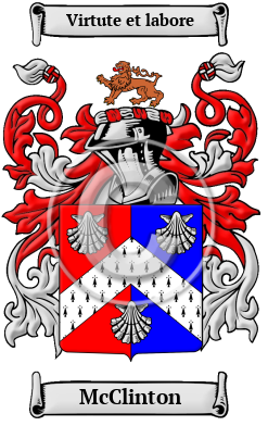 Scotland Ireland Etymology of McClintonWhat does the name McClinton mean? The McClinton family comes from the ancient Scottish Dalriadan clans of the mountainous west coast of Scotland. The name McClinton is derived from the Gaelic name Mac Gille Ghionndaig, commonly MacGilliondaig, which means son of the servant of St. Finndag or son of the fair young man. 1 S. Findan was founder of the monastery of Clonard in Belfast Ireland. "Fintan, Fintoc (whence later Fionndoc), are diminutives of Finn, later Florin." 1 Early Origins of the McClinton familyThe surname McClinton was first found in Argyllshire (Gaelic erra Ghaidheal), the region of western Scotland corresponding roughly with the ancient Kingdom of Dál Riata, in the Strathclyde region of Scotland, now part of the Council Area of Argyll and Bute. One of the first records of the family used an ancient spelling, M'Gillindak who is author of a poem in the Dean of Lismore's Book. "The Maclintocks belong to Luss and thereabouts and in the district of Lorn around Lochaweside from 1500. Duncan Mc gellentak, witness in Balquhidder, 1549. " 1 "MacClinton is a variant of Maclintock, q v., from the form Fintan. William McClintoun was messenger in Kyle in 1569 (RMS.). Finlay Macklintoun appears in the parish of Torphichen in 1676 (Torphichen)." 1 Early History of the McClinton familyThis web page shows only a small excerpt of our McClinton research. Another 191 words (14 lines of text) covering the years 1394, 1611, 1684, 1692, 1693, 1757, 1797 and 1890 are included under the topic Early McClinton History in all our PDF Extended History products and printed products wherever possible. McClinton Spelling VariationsTranslation in medieval times was an undeveloped science and was often carried out without due care. For this reason, many early Scottish names appeared radically altered when written in English. The spelling variations of McClinton include MacClintock, MacLintock, MacLinden, MacAlinden and many more. Early Notables of the McClinton familyMore information is included under the topic Early McClinton Notables in all our PDF Extended History products and printed products wherever possible. McClinton Rankingthe United States, the name McClinton is the 4,663rd most popular surname with an estimated 7,461 people with that name. 2 Migration of the McClinton family to IrelandSome of the McClinton family moved to Ireland, but this topic is not covered in this excerpt. Another 91 words (6 lines of text) about their life in Ireland is included in all our PDF Extended History products and printed products wherever possible.