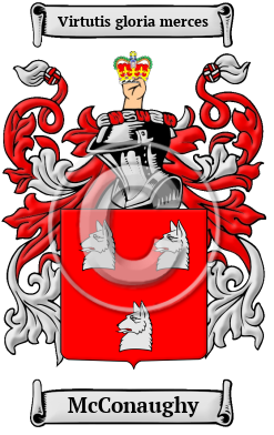 Scotland Ireland Etymology of McConaughyWhat does the name McConaughy mean? The ancestors of the McConaughy family come from the ancient Scottish kingdom of Dalriada. Their surname comes from the personal name Robert. Known as the Clan Donnachaidh, (MacDhonnchaidh) 'son of Duncan' the family's origins are very distinguished, as the senior branch of the line were the hereditary abbots of Dunkeld, who traced their descent from Iona. In addition, Abbot Duncan of Dunkeld, the Robertson progenitor, was killed in battle in 964, as he led the warriors, bearing, a reliquary of St. Columba. His grandson, Abbot Crinan of Dunkeld, married the Kings daughter and then fathered King Duncan I of Scotland who was killed by MacBeth (of Shakespearean fame). Crinan is buried at the Isle of lona, burial place of Scotland's early Kings. 1 McConaughy Coat of Arms CreationThe wolf, long a terror in many parts of Scotland, appears in several crests and shields. Wolves were evidently a pest in Perthshire, and it is said that one Donald Macdonald got the lands of Struan or Strowan in Perthshire for killing wolves, and three wolf heads appear in his shield. The crest is a hand holding an imperial crown, and the motto is " Virtutis gloria merces " (Glory is the reward of valour). Robert, one of the heads of the family, apprehended one of the murderers of King James I., and for this the family of Struan has since borne a wild man chained under the escutcheon of their arms. In the Highlands the Robertsons are known as the Clan Donnachai, pronounced Donachie, and it is sometimes asserted that the clan is not derived from the Macdonalds, but from Duncan, eldest son of Malcolm III., and it was from some Robert in the reign of James II. that they got the name Robertson. 2 Early Origins of the McConaughy familyThe surname McConaughy was first found in Atholl. King Duncan's younger son, Maelmore, sired Madadh, Earl of Atholl, and his grandson, Earl Henry, was father to Conan who held vast territories in this area. Conan of Glenerochie was the first Chief of the Robertsons and gave his name to the Clan Connchaidh or Duncan. His successor, Duncan, the 5th Chief, led the Clan in the army of King Bruce at Bannockburn in 1314 against the English. For this service, and his subsequent staunch support of the Scottish Crown, his grandson Robert of Struan was granted the lands and barony in 1451. Early History of the McConaughy familyThis web page shows only a small excerpt of our McConaughy research. Another 403 words (29 lines of text) covering the years 1520, 1561, 1587, 1645, 1653, 1668, 1680, 1686, 1689, 1703, 1705, 1715, 1723, 1727, 1745, 1746, 1749, 1783, 1784 and 1890 are included under the topic Early McConaughy History in all our PDF Extended History products and printed products wherever possible. McConaughy Spelling VariationsMedieval spelling was at best an intuitive process, and translation between Gaelic and English was no more effective. These factors caused an enormous number of spelling variations in Dalriadan names. In fact, it was not uncommon to see a father and son who spelled their name differently. Over the years, McConaughy has been spelled Robertson, MacConachie, Maconachie, MacConaghy, MacConchie, MacConckey, MacConkey, MacDonnachie, MacDonachie, MacDunnachie, MacInroy, MacLagan, Mac Raibeirt (Gaelic) and many more. Early Notables of the McConaughy familyThomas Robertson (fl. 1520-1561), schoolmaster and dean of Durham, was born at or near Wakefield in Yorkshire early in the sixteenth century.
