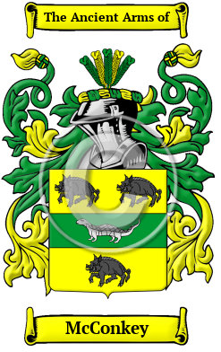 | McConkey History, Family Crest & Coats of Arms Etymology of McConkeyWhat does the name McConkey mean? The original Gaelic form of the name McConkey is Óconnachtaigh. This name can be considered a place name as it indicates that its original bearer inhabited Connaught. The prefix O, meaning '"grandson of" indicates descent from the original bearer. Early Origins of the McConkey familyThe surname McConkey was first found in County Donegal with the MacSweenys. That name is derived from Suibhne O'Neill, who was a chieftain in Argyll, Scotland. His descendants migrated to Ireland as gallowglasses (mercenaries) prior to 1267. The three great septs of this name finally established themselves in Tirconnell in 14th century; they were known as MacSweeney Fanad, MacSweeney Banagh, and MacSweeney na dTuath, who were commonly referred to as 'MacSweeney of the Battleaxes.' Early History of the McConkey familyThis web page shows only a small excerpt of our McConkey research. Another 183 words (13 lines of text) covering the year 1893 is included under the topic Early McConkey History in all our PDF Extended History products and printed products wherever possible. McConkey Spelling VariationsScribes and church officials, lacking today's standardized spelling rules, recorded names by how they were pronounced. This imprecise guide often led to the misleading result of one person's name being recorded under several different spellings. Numerous spelling variations of the surname McConkey are preserved in documents of the family history. The various spellings of the name that were found include Conaty, O'Conaty, Connaghty, Connoty, MacConaghy, MacConkey and many more. Early Notables of the McConkey familyMore information is included under the topic Early McConkey Notables in all our PDF Extended History products and printed products wherever possible. McConkey Rankingthe United States, the name McConkey is the 16,434th most popular surname with an estimated 2,487 people with that name. 1