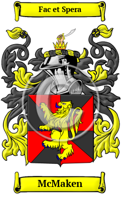 Scotland Ireland Etymology of McMakenWhat does the name McMaken mean? The age-old Hebrides islands and the west coast of Scotland are the ancestral home of the McMaken family. Their name comes from the son of Matthew. 1 In Gaelic, the name was spelled M'Mhathain or Mathanach. The latter names in Gaelic were probably derived from Mac Mhathghamhuin which means son of the bear. Indeed, early references of the name have reference to the Scottish bear. 2 3 Today, early legal records provide a plethora of information about the family with various early spellings. Some of the first records include, "Robertus filius Mathei [who] witnessed a charter by Walter filius Alani, a. 1177. John Mathyson and Michael Mathowson were outlawed as part guilty of the slaughter of Walter de Ogilvy, Sheriff of Angus, in 1392." 3 Early Origins of the McMaken familyThe surname McMaken was first found in the Scottish Highlands were they could be found in Lochalsh, Lochcarron and Kintail. They are said to descend from Gilleoin of the ancient and royal house of Lorne. They gave their allegiance to the Clan MacDonald, the Lord of the Isles. Kenneth MacMathan (Cormac Mac Mathian) was the constable of Eilean Donan castle and is recorded in most accounts of the invasion of King Haakon IV of Norway against Scotland in the 13th century. One accounts suggests that McMathan and his clansmen fought under the Earl of Ross, defeating Haaken at Largs in 1263. There is a record of Kermac Macmaghan in Inverness, receiving 20 cows from the Earl of Ross in 1264. "In the Norse Saga he is called Kjarmak son of Makamal = Corniac Macmathan. The Siol Mhathain, a sept of Matheson, in an old Gaelic song appears as Siol Mhothan. Matheson has been adopted as the English form of the name simply on account of the similarity of sound." 3 Early History of the McMaken familyThis web page shows only a small excerpt of our McMaken research. Another 418 words (30 lines of text) covering the years 1263, 1400, 1411, 1427, 1498, 1514, 1539, 1570, 1600, 1631, 1683, 1688, 1715, 1719, 1796, 1820, 1851, 1878 and 1963 are included under the topic Early McMaken History in all our PDF Extended History products and printed products wherever possible. McMaken Spelling VariationsMedieval spelling was at best an intuitive process, and translation between Gaelic and English was no more effective. These factors caused an enormous number of spelling variations in Dalriadan names. In fact, it was not uncommon to see a father and son who spelled their name differently. Over the years, McMaken has been spelled Mathieson, MacMaghan, MacMathan MacMaken, Mathie, Mann and many more. Early Notables of the McMaken familyMargaret Matson, one of two women tried in Philadelphia for witchcraft in 1683; Sir James Nicolas Sutherland Matheson (1796-1878), born in Shiness, Lairg, who made a great fortune in the opium trade, and was created the 1st Baronet of Lewis in 1851. His family proceeded to buy the former Clan territories: James Matheson bought 800,000 acres in Ross-shire and lands in... Another 60 words (4 lines of text) are included under the topic Early McMaken Notables in all our PDF Extended History products and printed products wherever possible. Migration of the McMaken family to IrelandSome of the McMaken family moved to Ireland, but this topic is not covered in this excerpt. Another 30 words (2 lines of text) about their life in Ireland is included in all our PDF Extended History products and printed products wherever possible.