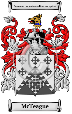 Ireland Etymology of McTeagueWhat does the name McTeague mean? The original Gaelic form of McTeague was Mac Taidh or Ó Taidhg. Early Origins of the McTeague familyThe surname McTeague was first found in County Galway (Irish: Gaillimh) part of the province of Connacht, located on the west coast of the Island, where they held a family seat from ancient times. Early History of the McTeague familyThis web page shows only a small excerpt of our McTeague research. Another 95 words (7 lines of text) covering the years 1172, 1493, 1583, 1589, 1772 and 1810 are included under the topic Early McTeague History in all our PDF Extended History products and printed products wherever possible. McTeague Spelling VariationsNames from the Middle Ages demonstrate many spelling variations. This is because the recording scribe or church official often decided as to how a person's name was spelt and in what language. Research into the name McTeague revealed many variations, including MacTeige, McTeige, MacTigue, McTigue, MacCaig, MacCaige, McCaig, McCaige, MacKaig, McKaig, MacKeague, McKeague, McKeage, MacTague and many more. Early Notables of the McTeague familyAnother 41 words (3 lines of text) are included under the topic Early McTeague Notables in all our PDF Extended History products and printed products wherever possible.