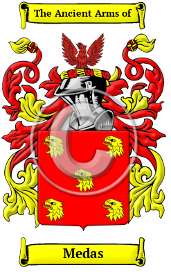 The surname Medas was first found in one of the places named Medeiros in Portugal.