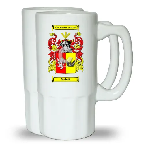 A Set of Two Ceramic Beer Steins, (Same Coat of arms on both Steins)