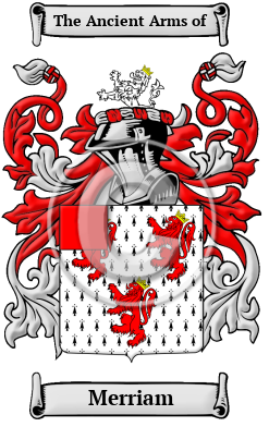 | Merriam History, Family Crest & Coats of Arms Etymology of MerriamWhat does the name Merriam mean? The ancestors of the Merriam family brought their name to England in the wave of migration after the Norman Conquest of 1066. They lived in Norfolk. Their name, however, is a reference to the family's place of residence prior to the Norman Conquest of England in 1066, Meret, Normandy. Early Origins of the Merriam familyThe surname Merriam was first found in Norfolk. However, some of the family were found at Stow-Maries in Essex. "This parish takes the adjunct to its name from the family of Marey, to whom the lands at one time belonged." 1 Early History of the Merriam familyThis web page shows only a small excerpt of our Merriam research. Another 74 words (5 lines of text) covering the years 1605, 1660 and 1682 are included under the topic Early Merriam History in all our PDF Extended History products and printed products wherever possible. Merriam Spelling VariationsBefore the last few hundred years the English language had no fixed system of spelling rules. For that reason, spelling variations occurred commonly in Anglo Norman surnames. Over the years, many variations of the name Merriam were recorded, including Merry, Mirrey, Merrie, Mirrie and others. Early Notables of the Merriam familyAnother 34 words (2 lines of text) are included under the topic Early Merriam Notables in all our PDF Extended History products and printed products wherever possible. Merriam Rankingthe United States, the name Merriam is the 10,044th most popular surname with an estimated 2,487 people with that name. 2 Migration of the Merriam family to IrelandSome of the Merriam family moved to Ireland, but this topic is not covered in this excerpt. Another 31 words (2 lines of text) about their life in Ireland is included in all our PDF Extended History products and printed products wherever possible.