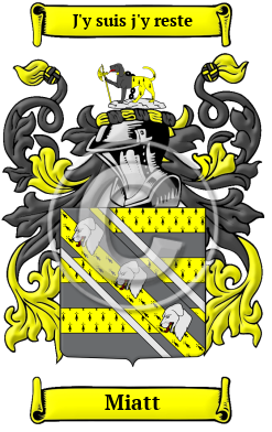 The surname Miatt was first found in Southern England where bearers of the name are thought to have resided since the times of the Norman invasion.