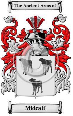 | Midcalf History, Family Crest & Coats of Arms Etymology of MidcalfWhat does the name Midcalf mean? The ancestors of the Midcalf surname lived among the ancient Anglo-Saxon culture. The name comes from when they lived in Yorkshire, where the family was found since the early Middle Ages. The name is of ancient Anglo-Saxon origin, deriving from two possible sources. Firstly, such Old English terms as mete-corn, meaning "corn for food," and mete-cu, meaning "cow that is to furnish food," make it conceivable that the name Midcalf is derived from an Old English word "mete-calf," meaning "a calf being fattened up for slaughtering." In this instance, the name would have been originally borne by a calf farmer. Alternatively, the name may come from Middleton Calf Top, a settlement on "The Calf," a hill located at the western boundary of Yorkshire; an early inhabitant of this settlement was known as Medecalf. Early Origins of the Midcalf familyThe surname Midcalf was first found in Yorkshire, where the first bearer of the name was said to be William Medecalf de Dent, who lived in Middleton Calf Top during the 12th century when the boundaries of the new counties of Westmorland, Cumberland, and Yorkshire West Riding were formed. The name also appeared on the census rolls where one of the earliest known bearers, Adam Medecalf, appeared in these rolls in 1301. There seems to be a historical relationships with the Turnbulls that goes back at least 500 years. In most cases the surnames were seen side by side as seen in the humorous quote: "Mr. Metcalf ran off on the meeting of a cow, With pale Mr. Turnbull behind him" 1 Another source claims this as the "traditional" origin of the name: "One John Strong having seized a mad bull by the nostrils with his left hand, killed the beast with his right, and being afterwards questioned on the subject of his prowess, modestly declared that he had simply met a calf. From that time he acquired the surname of Metcalf!" 2 This same source has another whimsical story: "Another version of the story is that 'two men being in the woods together at evening, seeing a four-footed animal coming towards them,' one said, 'Have you not heard of lions in these woods?' The other replied that he had, but had never seen any such thing. The animal coming near, one ran away, while the other resolved to meet it; which proving to be a red calf, he that met it got the name of Metcalfe, and he that ran away that of Lightfoot!" 2 There was a wide variety of spellings used by the family is the early days. The Yorkshire Poll Tax Rolls of 1379, include: Willelmus Miducroft; and Ricardus de Meducroft. Another authority claims "It is a remarkable fact that I cannot find Metcalf in the Yorkshire Poll Tax of of 1379. But the Meducrofts are there. Probably the corruption had not yet taken place." 1 By the 16th and 17th century, the name was "so numerous are they that there is scarcely a town or village in the North Riding [of Yorkshire] which cannot own an inhabitant of the name; in truth, in 1607 the Metcalfes were accounted the most numerous family in England; even in 1555 it is recorded that Sir Christopher Metcalfe, of Nappa Hall, near Askrigg, being High Sheriff of Yorkshire, was attended by 300 horsemen, all of his own family and name." 3 Early History of the Midcalf familyThis web page shows only a small excerpt of our Midcalf research. Another 84 words (6 lines of text) covering the years 1556, 1717, 1785, 1810, 1843, 1846 and 1890 are included under the topic Early Midcalf History in all our PDF Extended History products and printed products wherever possible. Midcalf Spelling VariationsBefore English spelling was standardized a few hundred years ago, spelling variations of names were a common occurrence. Elements of Latin, French and other languages became incorporated into English through the Middle Ages, and name spellings changed even among the literate. The variations of the surname Midcalf include Metcalfe, Medcalfe, Metcalf, Medcalf, Midkiff and many more. Early Notables of the Midcalf familySir Christopher Metcalfe (c.1556), High Sheriff of Yorkshire, who met the Judges of Assize in York on horseback with 300 mounted men of his own name and kindred, John Metcalf (1717-1810), known as Blind Jack of Knaresborough, a blind British engineer, athlete, and horseman who fought at Falkirk... Another 47 words (3 lines of text) are included under the topic Early Midcalf Notables in all our PDF Extended History products and printed products wherever possible. Migration of the Midcalf family to IrelandSome of the Midcalf family moved to Ireland, but this topic is not covered in this excerpt. Another 71 words (5 lines of text) about their life in Ireland is included in all our PDF Extended History products and printed products wherever possible. Migration of the Midcalf familyA great wave of immigration to the New World was the result of the enormous political and religious disarray that struck England at that time. Families left for the New World in extremely large numbers. The long journey was the end of many immigrants and many more arrived sick and starving. Still, those who made it were rewarded with an opportunity far greater than they had known at home in England. These emigrant families went on to make significant contributions to these emerging colonies in which they settled. Some of the first North American settlers carried this name or one of its variants: Christopher and James Metcalf, who both settled in Virginia in 1635; Elizabeth, Jane, John, Mary, Michael, Rebecca, Sarah and Thomas Metcalf, who all settled in Boston in 1637.