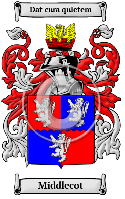 | Middlecot History, Family Crest & Coats of Arms Etymology of MiddlecotWhat does the name Middlecot mean? The Middlecot surname comes from when the Middlecot family lived in the settlement of Medlicott in the English border county of Shropshire. The surname Middlecot belongs to the category of habitation names, which are derived from pre-existing names for towns, villages, parishes, or farmsteads. Early Origins of the Middlecot familyThe surname Middlecot was first found in Shropshire, at Medlicott, a parish in Wentnor. It is generally believed that the oldest record of the family was Llewelyn de Modlicott who resided here c. 1180. He was son of Sir Roger de Meldron (died c. 1200.) By the Hundredorum Rolls of 1273, some of the family were found in Devonshire where Richard de Middlecote was listed as holding lands at that time. 1 "The ancient Shropshire family of Medlicott, which took its name from a manor, flourished in the 13th century. The Medlycott family of Ven House, Milborne Port, Somerset, originally came from Shropshire." 2 Early History of the Middlecot familyThis web page shows only a small excerpt of our Middlecot research. Another 154 words (11 lines of text) covering the years 1586, 1593 and 1625 are included under the topic Early Middlecot History in all our PDF Extended History products and printed products wherever possible. Middlecot Spelling VariationsThere are relatively few surnames native to Wales, but they have an inordinately large number of spelling variations. Early variations of Welsh surnames can be explained by the fact that very few people in the early Middle Ages were literate. Priests and the few other literate people were responsible for recording names in official documents. And because most people could not specific how to properly record their names it was up to the individual recorder of that time to determine how a spoken name should be recorded. Variations due to the imprecise or improper recording of a name continued later in history when names originally composed in the Brythonic Celtic, language of Wales, known by natives as Cymraeg, were transliterated into English. Welsh names that were documented in English often changed dramatically since the native language of Wales, which was highly inflected, did not copy well. Occasionally, however, spelling variations were carried out according to an individual's specific design: a branch loyalty within the family, a religious adherence, or even patriotic affiliations could be indicated by minor variations. The spelling variations of the name Middlecot have included Medlicot, Medlicott, Medlycot, Medlycott, Medlicote, Medleycot, Medleycott, Medleycote, Modlicot, Modlicote and many more. Early Notables of the Middlecot familyMore information is included under the topic Early Middlecot Notables in all our PDF Extended History products and printed products wherever possible. Migration of the Middlecot family to IrelandSome of the Middlecot family moved to Ireland, but this topic is not covered in this excerpt. More information about their life in Ireland is included in all our PDF Extended History products and printed products wherever possible. Migration of the Middlecot familyNorth America in the 1800s and 1900s saw the arrival of many Welsh people hoping to share in the wealth of land, work, and freedom that they felt North America held. Those who made the journey often attained those expectations, but only through an enormous amount of hard work, perseverance, and often a bout of good luck. These immigrants helped contribute to the growth of industry, commerce, and culture of both Canada and the United States. Discovered in the immigration and passenger lists were a number of people bearing the name Middlecot: Daniel Medlicott who landed in Philadelphia, Pennsylvania in 1683.