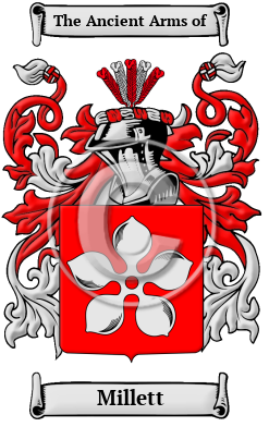 | Millett History, Family Crest & Coats of Arms Etymology of MillettWhat does the name Millett mean? Millett is a name that was carried to England in the great wave of migration from Normandy following the Norman Conquest of 1066. The Millett family lived in Buckinghamshire. The name, however, is reference to the family's place of residence prior to the Norman Conquest of England in 1066, Miall, Normandy. Alternatively, the name could have been a "metonymic occupational name for a grower or seller of millet or panic grass, from the Old French word 'milium' " 1 Early Origins of the Millett familyThe surname Millett was first found in various counties and shires throughout Britain as seen in the Hundredorum Rolls of 1273: Roger Millot in Nottinghamshire; and John Milot in Huntingdonshire. The Yorkshire Poll Tax Rolls of 1379 lists: Willelmus Melot; Johannes Millot; Matilda Millot; and Rogerus Millotson. 2 The History and Antiquities of North Durham, by Rev. James Raine in 1852 lists the following family in Durham: John Mylote in 1380; William Melot in 1433; and Robert Millot in 1512. Early History of the Millett familyThis web page shows only a small excerpt of our Millett research. Another 74 words (5 lines of text) are included under the topic Early Millett History in all our PDF Extended History products and printed products wherever possible. Millett Spelling VariationsBefore English spelling was standardized a few hundred years ago, spelling variations of names were a common occurrence. Elements of Latin, Norman French and other languages became incorporated into English throughout the Middle Ages, and name spellings changed even among the literate. The variations of the surname Millett include Millet, Millett and others. Early Notables of the Millett familyMore information is included under the topic Early Millett Notables in all our PDF Extended History products and printed products wherever possible. Millett Rankingthe United States, the name Millett is the 9,661st most popular surname with an estimated 2,487 people with that name. 3 Migration of the Millett family to IrelandSome of the Millett family moved to Ireland, but this topic is not covered in this excerpt. More information about their life in Ireland is included in all our PDF Extended History products and printed products wherever possible.