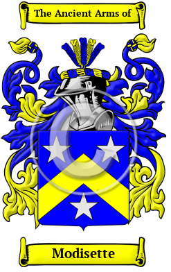 France Etymology of ModisetteWhat does the name Modisette mean? The majestic country of France is the ancestral homeland of the distinguished surname Modisette.The earliest forms of hereditary surnames in France were the patronymic surnames, which are derived from the father's given name, and metronymic surnames, which are derived from the mother's given name. The patronyms were derived from a variety of given names that were of many different origins. The name Modisette was originally derived from the early Christian given name Mauritius, which itself comes from the Phoenician word mauharim, meaning eastern. Alternatively, the name could be a nickname derived from the Old French word 'moris' which would be a nickname for one with a swarthy complexion and dark hair. And finally, the French surname Modisette could be the feminine form of Morrisset, a diminutive or the family name Morisse (or Morise). This, in turn, is a variant of Maurice, a popular fontal, and family, name in medieval times. The name is patronymic in origin, belonging, as it does, to that category of names derived from the first name of a father or ancestor. Modisette, in this case, simply denotes "the son of Maurice". The name owes its origin to the 3rd-century saint of the name Mauritius (from the Greek word meaning "dark"). He was the leader of Rome's Thebian Legion and was martyred at the uprising against Rome in Gaul in the year 286 A.D. Early Origins of the Modisette familyThe surname Modisette was first found in Guyenne, where the family was anciently seated. Several members of this distinguished family became renowned. Jean Morisot, born in Dôle around 1510, was a scholar that studied medicine. Claude-Barthélemy Morisot was born in Dijon in 1592 and was the son of a consultant for the treasury of Dôle. He was also a scholar and died in Dijon in 1661. Antoine Maurice, born in Eyguières, a small village of Provence, was also a scholar. He died in Geneva in 1756. Early History of the Modisette familyThis web page shows only a small excerpt of our Modisette research. Another 36 words (3 lines of text) covering the years 1767, 1821, 1841 and 1895 are included under the topic Early Modisette History in all our PDF Extended History products and printed products wherever possible. Modisette Spelling VariationsSpelling variations of this family name include: Morise, Morisse, Morice, Maurice, Maurisse, Moriset, Morriset, Morisette, Morrisette, Morisset, Morrisset, Morissette, Morrissette, Mauricet, Morisot, Morissot, Maurissot, Morison, Morisson and many more. Early Notables of the Modisette familyAnother 41 words (3 lines of text) are included under the topic Early Modisette Notables in all our PDF Extended History products and printed products wherever possible. Migration of the Modisette familySome of the first settlers of this family name or some of its variants were: Charles Antoine Morisset, who settled in Louisiana in 1719; Antoine Morisseau, who settled in Louisiana in 1756; and Ambrose Morison, who settled in Georgia in 1773..