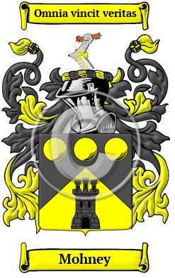 | Mohney History, Family Crest & Coats of Arms Etymology of MohneyWhat does the name Mohney mean? The name Mohney arrived in England after the Norman Conquest of 1066. The Mohney family lived in Kent. The name, however, is a reference to the family's place of residence prior to the Norman Conquest of England in 1066, Moion, near St. Lo, Normandy, "where the site of their castle is still to be seen. Wace tells us that 'old William de Moion had with him many companions' and the battle of Hastings, and one of Leland's rolls of the Norman conquerors is nothing but a list of those who came in the train of 'Monseir William de Moion le Veil, le plus noble de tout l'ouste." 1 Early Origins of the Mohney familyThe surname Mohney was first found in Kent where they held a family seat at Maidstone in that shire. They were descended from Guillaume (William) de Moyon a Norman Baron whose seat was at the castle of Moion, near St. Lo in Normandy. 2 William de Moyon received large grants of land in Somerset, the Lordship of Clehangre in Devon, and Sutton in Wiltshire. He also had grants in Kent. From William was descended the first Earl of Somerset, the Earls of Dorset and the Barons of Okehampton. "At the period of the Conquest, this town [now called Minehead], then called Manheved, was given by William [the Conqueror] to William de Mohun." 3 Although the main stem of this very noble Norman family retained the various spellings of Munn or Munns, junior lines adopted the name Munson or Munnings. The same William de Mohun (Moyon) held estates in Dunster, Somerset. "The town, which is called Torre in Domesday Book, owes its origin to a baronial castle built here by William de Mohun, a Norman Baron, on whom the Conqueror had bestowed large estates in this part of the kingdom. The castle, which was held by the family of Mohun till the reign of Edward III., was the scene of hostilities in the civil wars of the reigns of Stephen and John, and in the contests between the houses of York and Lancaster; the Marquess of Hertford, also, took possession of it for Charles I. during the war with the parliament." 3 "Rosteage, [in the parish of Gerrans, Cornwall] in the reign of Elizabeth, was the seat of Reginald Mohun, a captain under Sir Walter Raleigh. In this family it continued until the year 1662, when it was purchased by Nicholas Kempe, Esq." 4 Early History of the Mohney familyThis web page shows only a small excerpt of our Mohney research. Another 260 words (19 lines of text) covering the years 1390, 1400, 1508, 1510, 1537, 1564, 1568, 1571, 1573, 1579, 1587, 1595, 1603, 1606, 1608, 1610, 1613, 1615, 1616, 1618, 1620, 1625, 1626, 1629, 1641, 1642, 1645, 1665, 1681, 1684, 1685, 1689, 1690, 1692, 1712, 1718 and 1890 are included under the topic Early Mohney History in all our PDF Extended History products and printed products wherever possible. Mohney Spelling VariationsAnglo-Norman names are characterized by a multitude of spelling variations. When the Normans became the ruling people of England in the 11th century, they introduced a new language into a society where the main languages of Old and later Middle English had no definite spelling rules. These languages were more often spoken than written, so they blended freely with one another. Contributing to this mixing of tongues was the fact that medieval scribes spelled words according to sound, ensuring that a person's name would appear differently in nearly every document in which it was recorded. The name has been spelled Moyon, Moion, Mohun, Moyne, Munn, Munns, Munson, Munton, Mwn, Mun, Munds, Mouns, Muns, Munnes, Munnson, Munnsen, Munning and many more. Early Notables of the Mohney familySir Reginald Mohun, 1st Baronet (ca.1603-1642), an English politician who sat in the House of Commons in 1625 and 1626; John Mohun, 1st Baron Mohun of Okehampton (1595-1641), an English politician; Warwick Mohun, 2nd Baron Mohun of Okehampton (1620-1665), an English politician; Michael Mohun (1616?-1684), a leading British actor, he began his stage career as a young boy filling female roles eventually becoming... Another 62 words (4 lines of text) are included under the topic Early Mohney Notables in all our PDF Extended History products and printed products wherever possible. Migration of the Mohney family to IrelandSome of the Mohney family moved to Ireland, but this topic is not covered in this excerpt. Another 99 words (7 lines of text) about their life in Ireland is included in all our PDF Extended History products and printed products wherever possible. Migration of the Mohney familyFor many English families, the political and religious disarray that plagued their homeland made the frontiers of the New World an attractive prospect. Thousands migrated, aboard cramped disease-ridden ships. They arrived sick, poor, and hungry, but were welcomed in many cases with far greater opportunity than at home in England. Many of these hardy settlers went on to make important contributions to the emerging nations in which they landed. Among early immigrants bearing the name Mohney or a variant listed above were: William Munnes arrived in Virginia in 1619; a year before the Mayflower; HolliBerry Munn settled in Barbados in 1654; Thomas Munns settled in the Bahamas in 1679 with his servants.