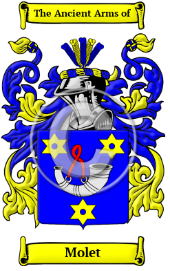 France Etymology of MoletWhat does the name Molet mean? The ancestral home of the Molet family is the French region of Auvergne. Molet was a name for someone who lived in the administrative regions of Cantal and Puy-de-Dôme. The place-name survives as Aveyron, an administrative region just to the south of the historical location of the province. Early Origins of the Molet familyThe surname Molet was first found in Auvergne, a historic province in south central France. Early History of the Molet familyThis web page shows only a small excerpt of our Molet research. Another 192 words (14 lines of text) covering the years 1045, 1804 and 1813 are included under the topic Early Molet History in all our PDF Extended History products and printed products wherever possible. Molet Spelling VariationsThe many different spellings of French surnames can be partially explained by the use of local dialects and by the influence of other languages during the early development of the French language. As a result of these linguistic and cultural influences, the name Molet is distinguished by a number of regional variations. The many spelling variations of the name include Mollette, Molete, Mollet, Mollite, Molet, de Mollette, la Molete, de la Mollet and many more. Early Notables of the Molet family- Jean-Baptiste de Molette de Morangiès, Commander of the Legion of Honour and Baron of the Empire