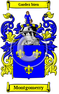| Montgomerry History, Family Crest & Coats of Arms Etymology of MontgomerryWhat does the name Montgomerry mean? The Montgomerry family name comes originally from a place name in Normandy, such as Saint Foi de Montgomery. The name made its way to Scotland with the Normans, where it became Mac Gumaraid, in Gaelic. The name is "of territorial origin from the ancient casde of Sainte Foi de Montgomery in the diocese of Lisieux in Normandy. The name of this castle, enjoys a peculiar privilege above all others in Norman geography. Other spots in Normandy have given their names to Norman houses and these Norman houses have transferred these names to English castles and English towns and villages. But there is only one shire in Great Britain which has had the name of a Norman lordship impressed upon it forever." 1 Early Origins of the Montgomerry familyThe surname Montgomerry was first found in Renfrewshire (Gaelic: Siorrachd Rinn Friù), a historic county of Scotland, today encompassing the Council Areas of Renfrew, East Renfrewshire, and Iverclyde, in the Strathclyde region of southwestern Scotland, where they were granted lands by Malcolm Canmore, King of Scotland. The manor of Eaglesham became the Clan seat of the family for many centuries. Looking further back, we found Roger de Montgomery (died 1093?), who came from the Castle of Sainte Foi de Montgomery, in Lissieux, Normandy, arrived in England with William the Conqueror. 2 Soon after the Battle of Hastings, Roger was granted lands on the Welsh Border in the County which later took his name, Montgomeryshire. "In reward for his services, he was created Earl of Arundel and Shrewsbury, and received manors in many counties. From him the town and shire of Montgomery, in Wales, derive their name." 3 Roger's grandson, Phillip de Montgomerie went to Scotland with Walter FizAlan, also of the Welsh border country, "settled in Scotland, where he received a grant of the lands of Eaglesham in Renfrewshire and died in 1140, was the ancestor of the Scottish family of Montgomery." 4 Some claim he became high Steward of Scotland and was the progenitor of the great Stewart Clan. Although Normandy has so far been established as the origin of this family, a family legend related in a poem places their origin earlier, perhaps, even to Roman times: "A noble Roman was the Root, from which Montgomeries came, Who brought his legions from the war, and settled the same. Upon a hill twixt Rome and Spain. Gomericus by name; from which he and his offspring do their sire name still retain." 1 Early History of the Montgomerry familyThis web page shows only a small excerpt of our Montgomerry research. Another 299 words (21 lines of text) covering the years 1165, 1177, 1449, 1460, 1470, 1507, 1508, 1545, 1556, 1610, 1623, 1642, 1649, 1661, 1663, 1667, 1694, 1700, 1713, 1718, 1722, 1726, 1733, 1761, 1797 and 1890 are included under the topic Early Montgomerry History in all our PDF Extended History products and printed products wherever possible. Montgomerry Spelling VariationsSpelling variations of this family name include: Montgomery, Mongomery, Montgomerie, Mungummery and many more. Early Notables of the Montgomerry familyAlexander Montgomerie (c.1556-1610), Scottish Poet Laureate in the service of King James VI of Scotland best remembered for his allegorical poem 'The Cherrie and the Slae'; Sir James Montgomery, 4th Baronet (died 1694), the tenth laird of Skelmorlie, leader of the Montgomery Plot, a Jacobite scheme to restore King James VII and II to the thrones of Scotland and... Another 58 words (4 lines of text) are included under the topic Early Montgomerry Notables in all our PDF Extended History products and printed products wherever possible. Migration of the Montgomerry family to IrelandSome of the Montgomerry family moved to Ireland, but this topic is not covered in this excerpt. Another 175 words (12 lines of text) about their life in Ireland is included in all our PDF Extended History products and printed products wherever possible. Migration of the Montgomerry familySome of the first settlers of this family name or some of its variants were: Adam Montgomery, who arrived in Boston in 1694; William Montgomerie, who came to New Jersey in 1701; Ester Montgomery, who settled in Virginia in 1724.
