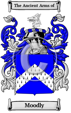 | Moodly History, Family Crest & Coats of Arms Etymology of MoodlyWhat does the name Moodly mean? The name Moodly is rooted in the ancient Anglo-Saxon culture. It was a name for someone who was a bold or impetuous person. The surname Moodly is derived from the Old English word modig, which means brave, impetuous, or bold. Occasionally, the surname Moodly is derived from the female personal name Melodia. In this case, this name is a metronymic surname, which is derived from the name of the mother. 1 2 Early Origins of the Moodly familyThe surname Moodly was first found in Devon, where the source Old English Bynames lists Alwine Modi as living there c. 1100-1130. A few years later in Nottinghamshire, Godric Modi was listed c.1150. 3 The Hundredorum Rolls of 1273 lists Adam Mody, Oxfordshire; Roger Mody, Salop (Shropshire); and Simon Modi, Cambridgeshire. In Yorkshire, the Yorkshire Poll Tax Rolls of 1379 included: Johannes Mody, husband; Thomas Mody and Sibota uxor ejus; and Thomas Mody and Agnes uxor ejus. 1 "Moody is an ancient name that was represented in the reign of Edward I. by Mody and Mudy in Norfolk, and by Mody and Modi in Oxfordshire and Wilts (H. R.). Probably the Suffolk and Yorkshire name of Mudd or Mudde is another form of this name. Moody is a name that has also a home in the south and west of England in Hampshire and Somerset. William Moody possessed 29 acres in Partney, Lincolnshire, in 1616; and there was a John Moody, Esq., of Scremby, in this county, about 1750. The name of Moody was represented by Mody or Modi in the neighbouring county of Wiltshire 600 years ago." 4 We would be remiss if we did not mention of the family in Scotland. There, the first on record was "Johannes Modi [who] served on an inquest made at Peebles in 1262." 5 "William Mudy, merchant, had a safe conduct to visit England in 1365 with four companions, and William Mudy armiger, with two horsemen in 1367-1368. Sorlet, rector of Assend (Assynt) witnessed the charter of Bishop William (Mudy) to his brother-german Gilbert Mudy in 1455. Thome Mwdy and Robert Mwdy appear in Brechin in 1450, the former held land there in 1461 and in 1496 John Mwdy held land there. Mudy occurs in Perth in 1499, William Mwdye was chamberlain of Orkney in 1563, and Robert Mudie had a charter of part of the lands of Maistertoun in 1600. The direct line in Forfarshire endea on the death of John Mudie of Pitmuies in 1876. George Mudy was enrolled burgess of Dundee in 1576, and a burial place for Mudies was erected there in 1602." 5 Early History of the Moodly familyThis web page shows only a small excerpt of our Moodly research. Another 90 words (6 lines of text) covering the years 1297, 1428, 1563, 1600, 1637, 1639, 1727, 1812 and 1890 are included under the topic Early Moodly History in all our PDF Extended History products and printed products wherever possible. Moodly Spelling VariationsMoodly has been spelled many different ways. Before English spelling became standardized over the last few hundred years, spelling variations in names were a common occurrence. As the English language changed in the Middle Ages, absorbing pieces of Latin and French, as well as other languages, the spelling of people's names also changed considerably, even over a single lifetime. Many variations of the name Moodly have been found, including Moody, Moodye, Moodie, Mudy, Mudie and others. Early Notables of the Moodly familyAnother 27 words (2 lines of text) are included under the topic Early Moodly Notables in all our PDF Extended History products and printed products wherever possible. Migration of the Moodly family to IrelandSome of the Moodly family moved to Ireland, but this topic is not covered in this excerpt. Another 328 words (23 lines of text) about their life in Ireland is included in all our PDF Extended History products and printed products wherever possible. Migration of the Moodly familyIn an attempt to escape the chaos experienced in England, many English families boarded overcrowded and diseased ships sailing for the shores of North America and other British colonies. Those families hardy enough, and lucky enough, to make the passage intact were rewarded with land and a social environment less prone to religious and political persecution. Many of these families became important contributors to the young colonies in which they settled. Early immigration and passenger lists have documented some of the first Moodlys to arrive on North American shores: Simon Moody settled in Virginia in 1635; Edward Moody settled in Virginia in 1654; David Moody settled in Barbados in 1680 with servants; James Moody in Virginia in 1663.
