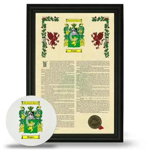 • Our most popular product, the Armorial, in a wooden Black Frame with an 8" Round Mouse Pad