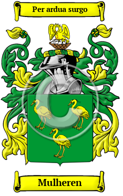 Ireland Etymology of MulherenWhat does the name Mulheren mean? The Irish surname Mulheren comes from the Gaelic Ó Maolciarain or Ó Maolchiarain, a patronymic, which means a descendant of a devotee of St. Kieran or Ciarán of Saigir. 1 The Mulhern(e) variant which is the most common today, claims descent through the O'Connor Faley pedigree, on the Heremon side. The name literally means "one who is dark grey." (O'Hart) Early Origins of the Mulheren familyThe surname Mulheren was first found in County Clare (Irish: An Clár) located on the west coast of Ireland in the province of Munster, where they held a family seat from ancient times. Mulhern(e) is typically an Ulster form of Mulkerrin which is a "County Roscommon family who were erenaghs of Ardcarne and produced many notable ecclesiastics." 1 Of note was Denis O’Mulkerrin (died 1224), Bishop of Elphin, and Maelisa O’Mulkerrin (died 1197), Bishop of Clogher. Another source notes the family descend from Mulheeran of Offaley, specifically Maolciaran, "ciaran." (O'Hart) Early History of the Mulheren familyThis web page shows only a small excerpt of our Mulheren research. Another 81 words (6 lines of text) covering the year 1172 is included under the topic Early Mulheren History in all our PDF Extended History products and printed products wherever possible. Mulheren Spelling VariationsPronunciation, rather than spelling, guided scribes and church officials when recording names during the Middle Ages. This practice often resulted in one person's name being recorded under several different spellings. Numerous spelling variations of the surname Mulheren are preserved in these old documents. The various spellings of the name that were found include Mulhearn, Mulheran, Mulherin, Mulhern, Mulherne and many more. Early Notables of the Mulheren familyMore information is included under the topic Early Mulheren Notables in all our PDF Extended History products and printed products wherever possible.