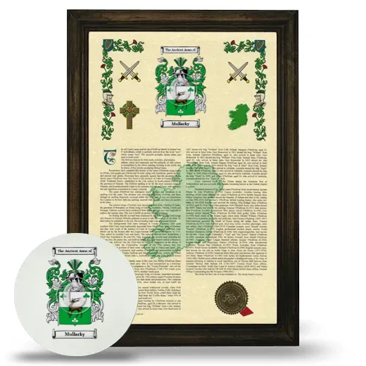 The Armorial is framed with our custom solid 1" wood frame which compliments the earliest rendition of your Coat of Arms, Family Crest, and Surname History.