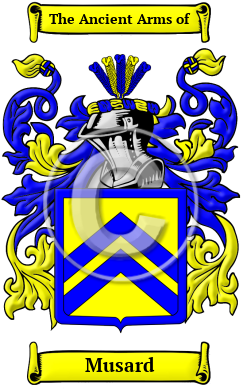 England Early Origins of the Musard familyThe surname Musard was first found in Derbyshire where "Ascuit, Hascoit, or Hasculphus Musard, holds a great barony in Domesday. Enisand Musard and Hugh Musard also appear there, the latter holding of the Countess Judith." 1 "There is a difference of opinion as to their origin. If, as M. de Ste Marie conjectures, they belonged to the Musards who were lords of Sauxelles and Issondun-sur-Creuse, in La Marche, up to the seventeenth century, they probably came to England under the banner of Roger de Poitou, who married the daughter of their feudal suzerain, Audebert, Count de la Marche. The author of the 'Norman People' says they were the sons of Hasculph, Viscount of Nantes in Britanny, and thei opnion is supported by the fact that Enisand Musard had vast grants in Yorkshire from Alan le Roux or Brittany." 2 The parish of Miserden in Gloucestershire has particular significance to the family. "This place derives its name from the family of Musard, who had a castle here, of which the foundation, with some broken fragments of wall, still remains." 3 Early History of the Musard familyThis web page shows only a small excerpt of our Musard research. Another 152 words (11 lines of text) covering the years 1086, 1093, 1153, 1455, 1487, 1510, 1537 and 1600 are included under the topic Early Musard History in all our PDF Extended History products and printed products wherever possible. Musard Spelling VariationsSpelling variations of this family name include: Musard, Mussard, Mussared, Musart, Mussart and others. Early Notables of the Musard family- the Musard family of Derbyshire