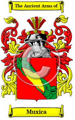 The surname Muxica was first found in the town located in the district of Guernica, Vizcaya in the Basque Country. Muxica is the surname of a noble Basque family who were related to the Avendaño family. Early records show the progenitor of this family was Juan Galíndez de Avendaño, a first son and heir of Fortún García de Avendaño, lord of Aramayona, Múgica and Arteaga.