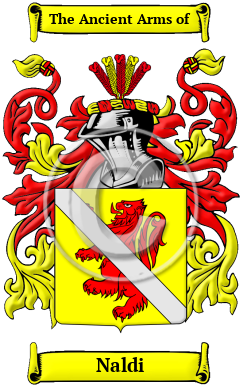 | Naldi History, Family Crest & Coats of Arms Early Origins of the Naldi familyThe surname Naldi was first found in Florence (Italian: Firenze), originally the capital of Tuscany, then capital of the kingdom of Italy. On the River Arno there are numerous Florentine Churches, Museums, Galleries. It dates back to 313 A.D. The history is complex and turbulent. The de' Medici family are the notables. They were expelled in 1494 but they returned in 1512, out in 1527 and then returned. In those ancient times only persons of rank, the podesta, clergy, city officials, army officers, artists, landowners were entered into the records. To be recorded at this time, at the beginning of recorded history, was of itself a great distinction and indicative of noble ancestry. The name is so widespread that it is very likely that there were originally several families that took this name without knowing of the others' existence; it is unlikely that all the bearers of the Naldi name in the world today share a common ancestor. The name is the Italian equivalent to the English name Reynold, which originated from a Germanic personal name composed of the elements "ragin," meaning "counsel" and "wald," meaning "rule." Early History of the Naldi familyThis web page shows only a small excerpt of our Naldi research. Another 108 words (8 lines of text) covering the years 1254, 1294, 1298, 1362, 1363, 1504, 1526, 1551, 1570, 1595, 1611, 1620, 1655, 1671, 1676, 1691, 1710, 1792 and 1794 are included under the topic Early Naldi History in all our PDF Extended History products and printed products wherever possible. Naldi Spelling VariationsSpelling variations of this family name include: Rinaldi, Rindaldo, Renaldo, Renaldi, Rinaldis, Rainaldo, Ranaldo, Renaldi, Rinaudi, Rinauro, Rinallo, Ranalli, Rinaldelli and many more. Early Notables of the Naldi family- Antonio Rinaldeschi (died 1504), was an Italian gambler and blasphemer; Odorico Raynaldi or Rinaldi (1595-1671), an Italian historian and Oratorian; Girolamo Rainaldi (1570-1655), an Italian architect...