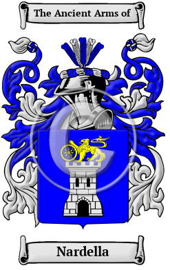 | Nardella History, Family Crest & Coats of Arms Etymology of NardellaWhat does the name Nardella mean? The Nardella surname was a patronymic name, created from the personal name Nardo, which was in turn, a shortened form of Bernardo. Early Origins of the Nardella familyThe surname Nardella was first found in the Kingdom of Naples, formerly Napoli or Neapolis, in southern Italy. There is also a city of Nardò in the province of Lecce, that dates from the Baroque era. Belisario Acquaviva, a nobleman and writer from the Kingdom of Naples became the first Duke of Nardo (Duca di Nardò) in the 15th century. Early History of the Nardella familyThis web page shows only a small excerpt of our Nardella research. Another 123 words (9 lines of text) covering the years 1310, 1384, 1394, 1424, 1425, 1457 and 1770 are included under the topic Early Nardella History in all our PDF Extended History products and printed products wherever possible. Nardella Spelling VariationsEnormous variation in spelling and form characterizes those Italian names that originated in the medieval era. This is caused by two main factors: regional tradition, and inaccuracies in the recording process. Before the last few hundred years, scribes spelled names according to their sounds. Spelling variations were the unsurprising result. The variations of Nardella include Di Nardi, Di Nardo, Nardo, Nardone, Nardini, Nardi, Nardis, Nordi, Nordine, Nardino and many more. Early Notables of the Nardella familyMariotto di Nardo (1394-1424), Italian painter, who worked in Florence; Jacopo Nardi, a 16th century historian, writer, and poet from Florence; Pietro Nardini, an 18th century violinist of Livorno, who was made musical director at the Court of the Duke of Tuscany in 1770; as well as the Nardone family of Naples... Another 78 words (6 lines of text) are included under the topic Early Nardella Notables in all our PDF Extended History products and printed products wherever possible.