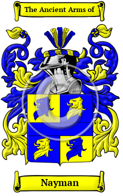 England Early Origins of the Nayman familyThe surname Nayman was first found in Lincolnshire where one of the first records of the name was Richard le Naim who was listed in the Pipe Rolls of that shire (1170-1178.) A few years later, John Nepos, le Neim was listed in the Curia Regis Rolls for Surrey in 1214. In Worcestershire, John le Neim (c. 1280) and John le Naym (1327) were listed in the Subsidy Rolls. Year later, John Naym was listed in the Inquisitions and Assessments relating to Feudal Aids in 1431. 1 The name was also traditionally known as a nickname having derived from the Old English word "neme" which meant "uncle." 2 Early History of the Nayman familyThis web page shows only a small excerpt of our Nayman research. Another 110 words (8 lines of text) covering the years 1175, 1430, 1510, 1600, 1698 and 1864 are included under the topic Early Nayman History in all our PDF Extended History products and printed products wherever possible. Nayman Spelling VariationsUntil the dictionary, an invention of only the last few hundred years, the English language lacked any comprehensive system of spelling rules. Consequently, spelling variations in names are frequently found in early Anglo-Saxon and later Anglo-Norman documents. One person's name was often spelled several different ways over a lifetime. The recorded variations of Nayman include Neame, Neeme, Neam, Neem, Neme, Name and others. Early Notables of the Nayman familyCharles Neame of Harefield Court and John Neame of Selling Court, Kent among the most valuable hop growers in East Kent. The are presumed to be the namesakes of Shepherd Neame, the English independent regional brewery founded in... Another 38 words (3 lines of text) are included under the topic Early Nayman Notables in all our PDF Extended History products and printed products wherever possible.