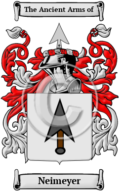 The surname Neimeyer was first found in Bavaria, where the name Neumeier was anciently associated with the tribal conflicts of the area. They declared allegiances to many nobles and princes of early history, lending their influence in struggles for power and status within the region. They branched into many houses, and their contributions were sought by many leaders in their search for power.