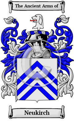 The surname Neukirch was first found in Switzerland, where the name came from humble beginnings but gained a significant reputation for its contribution to the emerging mediaeval society. It later became more prominent as many branches of the same house acquired distant estates and branches, some in foreign countries, always elevating their social status by their great contributions to society.