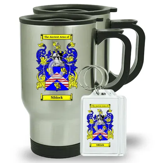 A set of two of our Coat of Arms Travel Mugs and set of two Keychains (same coat of arms). Each with a full color Coat of Arms with Family Crest shown on both sides of these beautiful items. Fill with the drink of your choice, and proudly show your family heritage. Excellent durability for years to come.