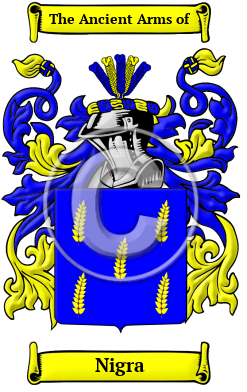 | Nigra History, Family Crest & Coats of Arms Etymology of NigraWhat does the name Nigra mean? From this historical and fascinating Italian region have emerged a multitude of noble families, including the distinguished Nigra family. Italian people were originally known only by a single name, but it became necessary to adopt a second name as populations grew and travel became more frequent. The surname Nigra is derived from the Italian word "negri" which means "black." It was most likely originally a nickname for someone with a dark complexion, perhaps for an immigrant from northern Africa. Early Origins of the Nigra familyThe surname Nigra was first found in Ferrara, a city and comune in Emilia-Romagna, northern Italy, capital city of the Province of Ferrara. History dates the city back to 753. One of the first records of the name was Carlo Negri di Pietra Santa who was a Bishop of the city in 929. Ferrar, a city in Emilia Romagna is the capital of the province of Ferrara. Them city was at war with Venice in 1471. It is a walled city and notable is the Church of S.Cristoforo. Knitted goods and shawls are made. In those ancient times only persons of rank, the podesta, clergy, city officials, army officers, artists, landowners were entered into the records. To be recorded at this time was in itself a family honor. Early History of the Nigra familyThis web page shows only a small excerpt of our Nigra research. Another 82 words (6 lines of text) covering the years 1290, 1480, 1528, 1544, 1585, 1616, 1623, 1624, 1626, 1663, 1666, 1698 and 1882 are included under the topic Early Nigra History in all our PDF Extended History products and printed products wherever possible. Nigra Spelling VariationsSurnames that originated in Italy are characterized by an enormous number of spelling variations. Some of these are derived from regional traditions and dialects. Northern names, for instance, often end in "o", while southern names tend to end in "i". Other variations come from the fact the medieval scribes tended to spell according to the sound of words, rather than any particular set of rules. The recorded variations of Nigra include Negri, Negro, Nigri, Nigris, Nigra, Negris, Negrelli, Negrotto, Negrello, Negroni and many more. Early Notables of the Nigra familyGaspare Negri, a Venetian painter whose only known painting entitled "Virgin with the Dead Christ and Saints" can be seen in Boston. Andalò Negro of Genoa was master of the famous poet and author Boccaccio. Iacopo Negretti was a Venetian painter who lived around 1544. He was a pupil of Titian and finished Titian's last masterpiece, entitled "Pietà." He was one of the artists assigned to the redecoration of the Ducal Palace in Venice, and also did designs for numerous mosaics in Saint Mark's Cathedral. Cesare Negri was the ballet master at the Court of Milan during the mid 16th century... Another 105 words (8 lines of text) are included under the topic Early Nigra Notables in all our PDF Extended History products and printed products wherever possible.