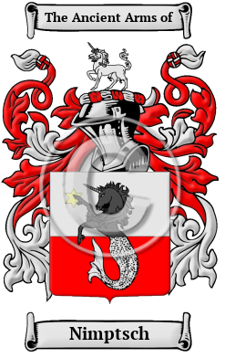 The surname Nimptsch was first found in Silesia, where the name gained a significant reputation for its contribution to the emerging mediaeval society. It later became more prominent as many branches of the same house acquired distant estates and branches, some in foreign countries, always elevating their social status by their great contributions to society. There is a record of Hans Nymptsch in Glatz, Lower Silesia, in 1494.